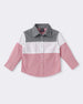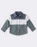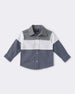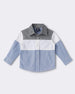 Refresh their wardrobe with this stylish colorblock blue shirt with white and grey color, for a smart, updated twist on a classic. The pointed collar and button front keep things sharp, while the airy fabric ensures comfort through school days and weekends alike.