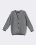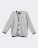This grey boys cotton sweater features full sleeves, a V-neck, and a button-down closure highlighted with navy contrast trims. Crafted from breathable cotton, it is comfortable, breathable, and durable, making it ideal for layering during cooler days. Perfect for casual wear, daily wear, playwear, party wear, festive wear, and family outings, this sweater adds a smart and cozy touch to your child’s winter style. Boys cotton contrast trim sweater; Grey V-neck button sweater kids; Cotton breathable boys sweater; Comfortable durable knitwear kids; Stylish party wear boys sweater; Trendy everyday cotton sweater boys; Casual festive winter wear kids; Grey contrast border cotton sweater