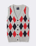 This boys red sleeveless cotton sweater features a V-neck design, pullover style, and a classic argyle pattern in a regular fit. Made from 100% breathable cotton, it is designed to be comfortable, breathable, and durable, ensuring kids stay cozy yet free to move easily. Perfect for casual wear, daily wear, playwear, party wear, festive wear, and family outings, this versatile piece adds a stylish layer to any outfit. Toddler Boys sleeveless cotton sweater; red argyle pullover kids sweater; 100% cotton breathable boys vest; V-neck sleeveless sweater boys; Comfortable cotton knitwear kids; Durable regular fit sweater vest; Stylish boys party wear sweater; Casual everyday cotton sweater kids