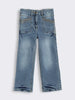 Give your little one’s wardrobe a stylish upgrade with these blue girls faded denim jeans. Made from soft and durable cotton denim, these jeans feature a classic faded wash and contrast stitch detailing that adds a trendy, rugged charm. The regular fit ensures comfort for all-day wear, while the functional pockets add practicality. Perfect for pairing with casual tees or shirts for a cool everyday look. Enzyme and silicone treated wash, keeps denim strong, soft, and sustainable. Girls denim jeans; Faded blue jeans; Kids denim pants; Girls casual denim; Stitch detailed jeans; Durable cotton jeans