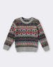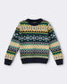 This green, navy, and yellow boys patterned round neck sweater adds a pop of fun to chilly days. Featuring a bold geometric knit pattern and vibrant color combinations, it’s both eye-catching and cozy. The ribbed neckline, cuffs, and hem ensure a snug fit, while the soft knit fabric keeps your little one warm in style — perfect for winter adventures or family gatherings. Boys patterned sweater; Multicolor knit pullover; Green navy yellow boys sweater; Winter fashion for boys; Cozy geometric knitwear; Stylish round neck sweater; Kids warm winter wear