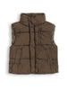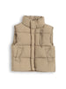 Keep your little one warm and stylish in this beige quilted puffer jacket. Designed with a high neck, front zipper closure, and spacious pockets, it provides excellent insulation and comfort. The lightweight yet cozy construction makes it perfect for layering during chilly days or outdoor play.Boys puffer jacket; Beige quilted jacket; Boys winter jacket; Lightweight warm jacket; Kids zipper outerwear
