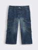 Boys cargo jeans; Utility denim pants; Blue cotton jeans; Kids cargo wear; Boys casual denim; Multi-pocket jeans; Stylish kids denim