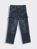 These blue boys utility denim jeans are designed for style and durability. Featuring multiple flap pockets, reinforced knee panels, and a classic faded wash, they bring a cool, rugged vibe to your little one’s wardrobe. The button closure with belt loops ensures a secure fit, while the soft yet sturdy denim allows easy movement for active days. Ideal for school, playtime, or weekend outings. Enzyme and silicone treated wash, keeps denim strong, soft, and sustainable.Boys denim jeans; Utility jeans for boys; Blue jeans with knee panels; Kids cargo denim; Durable cotton jeans; Stylish boys wear; Pocket jeans for boys