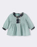 Bring a touch of whimsy to her wardrobe with this sweet green top, accented by checks of classic plaid at the collar, front, and cuffs. Gentle gathers and pintuck stitching create a breezy, playful silhouette, while the soft plaid ruffle neckline makes every outfit extra special.