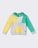 Bright and playful, this grey, yellow, and green colourblock hoodie jacket is a must-have for your little girl’s casual wardrobe. Designed with a soft cotton-blend fabric, it features a cozy hood, front kangaroo pocket, and ribbed cuffs for a snug fit. The vibrant color combination adds a trendy, sporty look, making it perfect for school, playdates, or weekend outings. Girls hoodie jacket; Colourblock sweatshirt; Kids casual wear; Girls cotton hoodie; Colourblock fashion; Kids sporty outfit; Girls winter wear