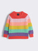 This orange girls cotton colourblock sweater features a vibrant mix of orange, pink, yellow, green, and purple stripes, designed with full sleeves, a round neck, and a regular fit. Made from soft, breathable cotton, it is comfortable, breathable, and durable, ensuring warmth and easy movement all day. Ideal for casual wear, daily wear, playwear, party wear, festive wear, and family outings, this sweater adds cheerful style to any look.