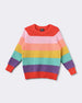 This orange girls cotton colourblock sweater features a vibrant mix of orange, pink, yellow, green, and purple stripes, designed with full sleeves, a round neck, and a regular fit. Made from soft, breathable cotton, it is comfortable, breathable, and durable, ensuring warmth and easy movement all day. Ideal for casual wear, daily wear, playwear, party wear, festive wear, and family outings, this sweater adds cheerful style to any look.