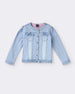 Give your little fashionista’s outfit a cute upgrade with this blue denim jacket featuring adorable bow accents on the chest pockets. Designed with a round neck, button-down front, and subtle pleat details on the shoulders, it blends charm with comfort. The braided hem adds a unique touch, making it perfect for layering over dresses, tees, or tops. Ideal for outings, parties, or everyday wear, this jacket is a must-have for trendy kids. Girls denim jacket; Kids blue jacket; Bow detail denim; Girls casual outerwear; Cotton denim jacket; Trendy kids jacket; Layering denim for girls
