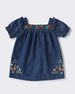 Girls Denim Ruffle Sleeve Dress with Embroidery