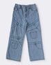 Girls denim jeans; Wide-leg jeans; Blue cotton denim; Kids fashion jeans; Utility pocket jeans; Girls casual wear; Trendy kids denim
