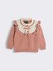 Pink and cream sweater features a playful ruffle collar and bow detail at the neckline, making it a standout layering piece for little ones. The button-front style means easy dressing, while the soft knit blend keeps kids warm and comfortable for playdates or outings.