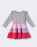 This grey, orange, and red girls colour block dress features a full sleeve design, round neck, and a tiered ruffle hem that adds playful volume. Designed in a regular fit with soft breathable fabric, it is comfortable, breathable, and durable, perfect for all-day wear. Ideal for casual wear, daily wear, playwear, party wear, festive wear, and family outings, this dress combines cheerful color-blocking with cozy style. Girls colour block dress; Grey orange red ruffle dress; Full sleeve cotton kids dress; Comfortable breathable girls wear; Stylish tiered casual dress; Trendy everyday cotton dress; Casual festive wear girls outfit; Colour block party dress for kids
