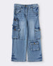 Girls Light Wash Multi Pocket Denim Cargo Jeans