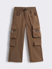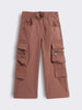 These brown girls multi pocket cargo pants combine style and practicality for everyday adventures. Designed with multiple flap and zipper pockets, they add a trendy, utility-inspired edge while keeping essentials close. The elastic waistband with drawstring ensures a secure and comfortable fit, and the durable cotton fabric offers ease of movement. Perfect for casual wear, playwear, outdoor trips, and travel days. Brown cargo pants; Girls utility pants; Multi-pocket trousers; Cotton cargo bottoms; Comfortable girls pants; Trendy cargo style; Kids outdoor wear
