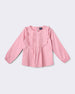 This pretty pink top features delicate ruffles and stitched pintuck pleats for a sweet, timeless style. The light, airy fabric keeps things breezy and comfortable, while the simple round neckline and gathered cuffs make it easy to wear for anything from playdates to family get-togethers.
