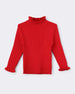 This red girls ruffle neck cable knit sweater is a cozy winter essential with a charming twist. It features a delicate ruffled neckline and cuffs, adding a touch of elegance to its classic cable-knit pattern. The snug fit and soft texture make it perfect for layering on chilly days. Ideal for family outings, festive occasions, or everyday wear, this sweater combines warmth with timeless style. Red cable knit sweater for toddler girls; Ruffle neck girls sweater; Elegant winter knitwear; Warm girls pullover; Soft knitted ruffle sweater; Stylish cable-knit girls top; Classic winter wear for kids