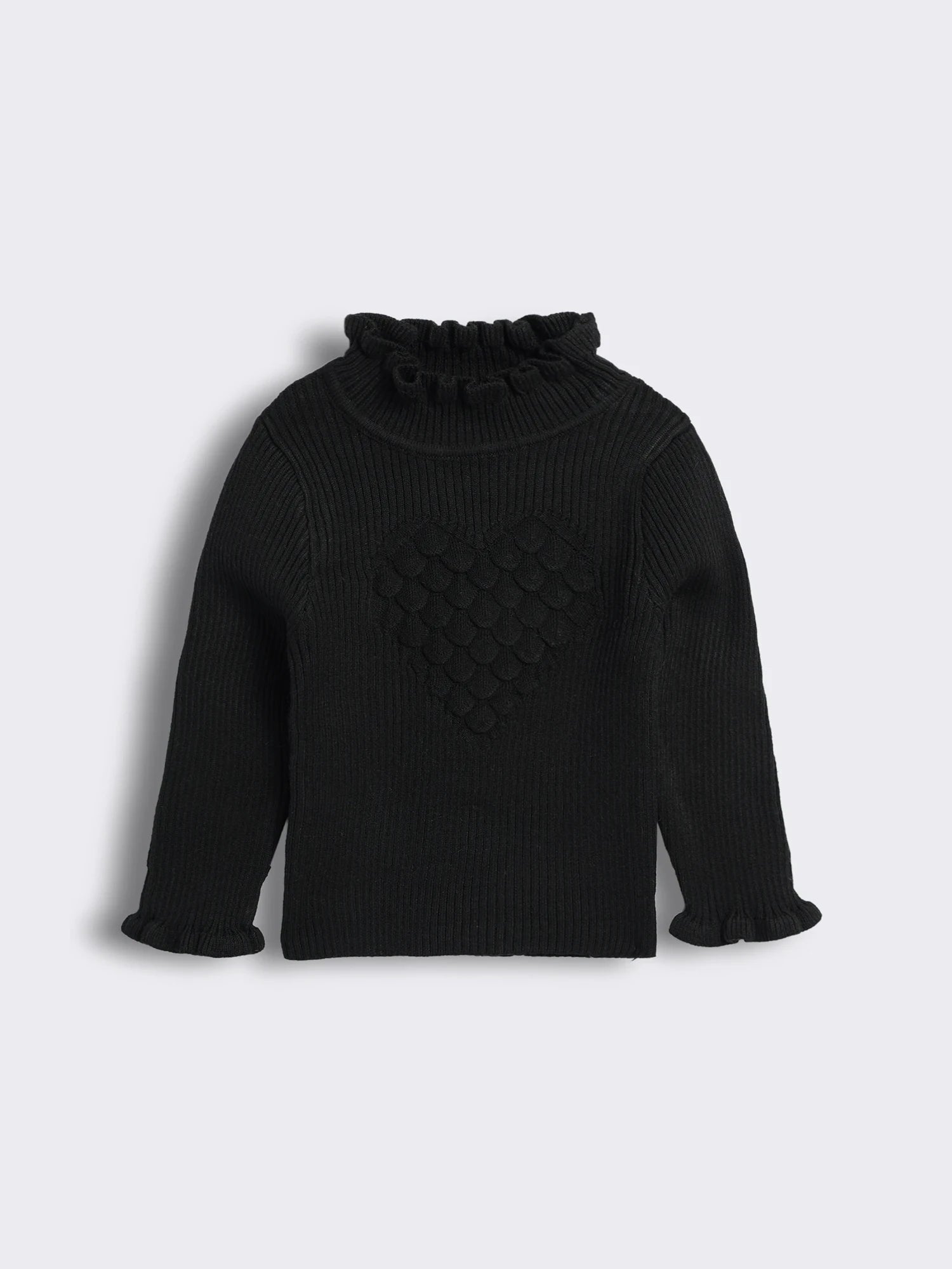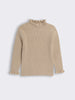 This white girls ruffle neck cable knit sweater is a cozy winter essential with a charming twist. It features a delicate ruffled neckline and cuffs, adding a touch of elegance to its classic cable-knit pattern. The snug fit and soft texture make it perfect for layering on chilly days. Ideal for family outings, festive occasions, or everyday wear, this sweater combines warmth with timeless style. White cable knit sweater for girls; Ruffle neck girls sweater; Elegant winter knitwear; Warm girls pullover; Soft knitted ruffle sweater; Stylish cable-knit girls top; Classic winter wear for kids