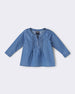 A charming twist on a wardrobe staple, this long sleeve denim top features gentle gathers and delicate pintucks at the neckline for a look that’s as sweet as it is timeless. The pull-over style and soft fabric make dressing a breeze, while the roomy cut keeps little ones comfortable whether they’re exploring indoors or out.