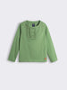 Bright and cheerful, this yellow girls cotton long-sleeve T-shirt adds a playful twist to everyday dressing. Designed with delicate pintuck detailing and subtle ruffle accents on the front placket, it brings a hint of charm to a classic silhouette. The soft cotton fabric ensures all-day comfort, making it perfect for school, playdates, or casual outings. & Girls cotton t-shirt; Yellow long sleeve top; Pintuck t-shirt for girls; Ruffle detail top; Comfortable kidswear; Casual girls clothing