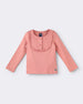 This pink girls cotton long-sleeve T-shirt combines comfort and charm effortlessly. Featuring delicate pintuck detailing and ruffle trims along the yoke, it adds a touch of sweetness to everyday wear. The buttoned placket and soft cotton fabric make it perfect for both casual days and dressier moments, keeping your little one stylish and comfortable all day long. Girls cotton top; Pink long sleeve t-shirt; Pintuck top for girls; Ruffle detail t-shirt; Soft cotton kidswear; Stylish girls top
