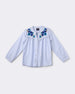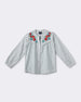 Brighten any day with this delightful green striped shirt, where bold floral embroidery on the yoke adds a fun burst of color and charm. The loose fit and gently gathered sleeves make it comfy for all-day play, while the crisp stripes keep things fresh and classic.