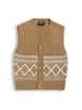 Add a smart and cozy layer to your little one’s outfit with this navy blue toddler boys sleeveless knit vest. Designed with a classic V-neck, front button closure, and stylish geometric knit pattern, it brings a polished look to everyday dressing. The soft knit fabric keeps your child warm without feeling bulky, making it ideal for layering over shirts or tees for outings, festive occasions, or casual wear. Infant boys knit vest; Navy blue sweater vest; Sleeveless boys vest; Buttoned knit vest; Winter layering for toddlers; Boys winter knitwear