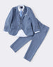 Make every occasion special with this elegant grey boys 5-piece formal suit set. Featuring a smart blazer, waistcoat, shirt, trousers, and tie, this ensemble is tailored for sophistication and comfort. The classic design with matching buttons and a sleek fit ensures a polished look, while the soft blended fabric allows easy movement. Perfect for weddings, parties, or festive celebrations, this set will have your little gentleman looking picture-perfect. Boys formal suit; Kids party wear; 5-piece suit set; Grey blazer set; Boys wedding outfit; Kids formal clothing; Smart boys occasion wear