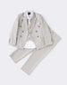 Dress your young gentleman in timeless elegance with this grey boys 5-piece formal suit set. It includes a tailored blazer, waistcoat, shirt, trousers, and tie, all crafted for a polished and sophisticated look. The subtle pinstripe pattern adds a refined touch, while the soft cotton blend ensures comfort through long events. Ideal for weddings, festive occasions, or formal gatherings, this suit is a perfect blend of smart style and comfort. Boys formal suit; Grey blazer set; Kids 5-piece suit; Boys wedding outfit; Kids party wear; Pinstripe formal wear; Smart boys clothing