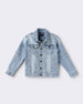 Give your little one a stylish edge with this blue boys light wash denim jacket. Crafted from soft and durable cotton denim, it features a classic button-down front, flap chest pockets, and a relaxed fit for all-day comfort. The light wash finish adds a trendy, casual vibe that pairs effortlessly with t-shirts, joggers, or jeans. Perfect for layering in any season, this versatile jacket is a must-have for cool kids’ wardrobes. Enzyme and silicone treated wash, keeps denim strong, soft, and sustainable.Boys denim jacket; Light wash denim; Kids blue jacket; Boys casual outerwear; Cotton denim for kids; Full-sleeve jacket; Trendy kids fashion