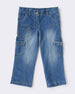 Add a rugged edge to your little one’s style with these blue girls denim cargo pants. Crafted from soft yet durable denim, these pants feature multiple utility pockets, buttoned flaps, and stitch detailing for a trendy, casual look. The comfortable waistband ensures an easy fit, making them perfect for active days or casual outings. Pair them with tees or shirts for a cool, everyday outfit. Enzyme and silicone treated wash, keeps denim strong, soft, and sustainable. Toddler Girls denim pants; Kids cargo jeans; Blue denim trousers; Girls utility pants; Casual kidswear; Denim cargo bottoms