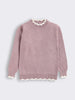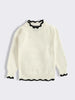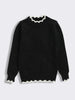 This black sweater keeps things simple and adds a bit of fun with its wavy white trim on the collar, cuffs, and hem. The fit is relaxed for easy movement, and the soft knit makes it comfy for school, playdates, or lounging at home.